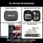Not only is it fun, but a properly setup guitar takes your playing & sound to a whole new level. MusicNomad’s 6 pc. Precision Setup Gauge Set demystifies the setup process by developing innovative, high quality gauges combined with step-by-step general guidelines anybody can follow to help setup their guitar or bass. After several years of research & development and in collaboration with Master Guitar Tech Geoff Luttrell & other top repair techs, MusicNomad has developed the KEEP IT SIMPLE, SETUP (KISS)™. With our KISS method and our 6 pc. Setup Gauge Set you can check the vital areas of your instrument & use our tools (sold separately) to perform your own setup. Whether you have an Electric, Acoustic, Classical, or Bass Guitar, we give you the exact spec you need by instrument type, including instructions printed right on the product taking the guesswork out of each task. The Set includes a: Truss Rod Gauge, Pick Capo, String Action Gauge, 2 Radius Gauges, & Nut Height Gauge. We even include a 24 page instructional booklet & a nice carrying case. That’s MusicNomad quality – raising the bar in equipment care.